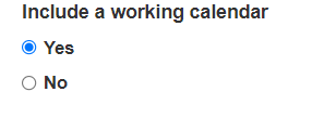 In the Working Calendar, we can select No if we don’t want to include the working calendar.